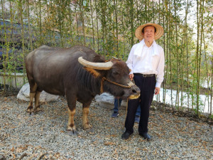 賴正鎰化身農夫牽著牛車亮相 都更基地化身千坪景觀綠地供市民休閒走春