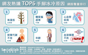 天氣逐漸轉涼,使得不少民眾即便身處室內,手腳仍難免感到冰冷。這樣的症狀常見於寒冷的天氣,以及個人體質偏寒等種種原因。本次我們便針對「手腳冰冷原因」進行觀測,一起來看看還有哪些可能導致四肢發寒...