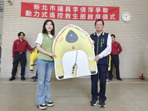 新北市政府消防局今(20)日辦理動力式遙控救生圈啟用儀式,該由新北市議員李倩萍積極爭取救災裝備經費,由消防局採購動力式遙控救生圈2組,總經費約新臺幣76餘萬元,並統籌配發新店及八里分隊使用,將有效提升第一線水域救援能...
