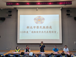 新北市榮民服務處今(16)日舉辦「113年退除役官兵代表懇談會」,由林振生處長主持,邀請退除役官兵代表、退伍軍人社團及臺北榮總、板橋榮家、臺北榮家及原民會北基宜區原住民就服辦公室、勞動部勞動...