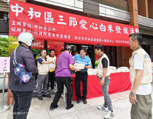 端午佳節將至,為關懷轄內經濟弱勢族群,中和區公所17日、18日於區公所、前國防管理學院中正堂,以及秀峰市民活動中心等3個地點發放白米。發放對象為列冊之低收入戶、中低收入戶、中低老人、身障生活...