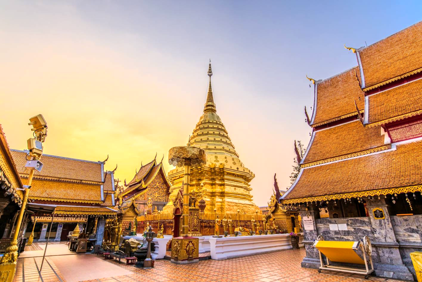 清邁最重要的地標之一,是這座位在海拔1053公尺高山上的素帖寺。素帖寺在進入寺廟前段306街的樓梯,兩旁各有霸氣的金龍守護寺廟,因此又被稱為雙龍寺。關於素帖寺,泰國民間流傳著一個關於白象的傳說,當年錫蘭高僧帶著珍貴的佛舍利來到泰國,為了擔心佛舍利被壞人搶走,便將佛舍利放在白象上,由白象選擇安放佛舍利的地點。最後白象走到素帖寺的現址便停下,「白象親自選址」的說法因此流傳。想要進入素帖寺主寺朝聖,暢遊旅行社提醒遊客必須脫鞋並穿著長裙或長褲,以顯示對神佛的尊重。