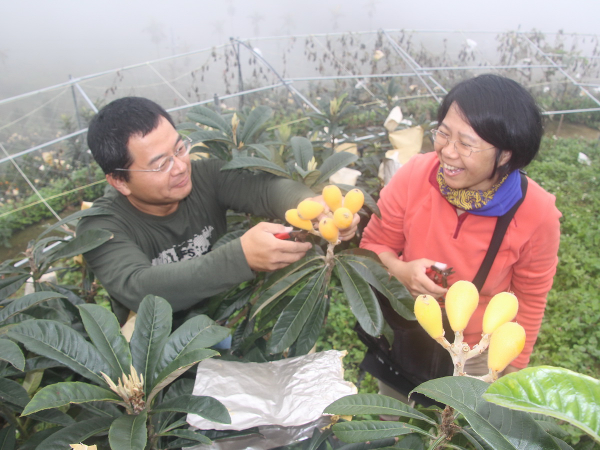 「也許是老天爺眷顧吧,我們也不知道為什麼種得還不錯耶!」天可憐見,沒想到,遵照中興大學植物病理學系蔡東纂教授在農民學堂授課方法種植的無毒枇杷,去年第一次收成就有好成績,不但果粒比其他農友大,平均一盒裝9粒或12粒,雖然還不足以養家,但至少成果很令人振奮,原本打算報名參加枇杷比賽的,無奈受限於區域,太平農會舉辦的枇杷比賽,新社地區的農友無法參加,夫妻倆有信心的說,不然, 他們一定是去年的冠軍。