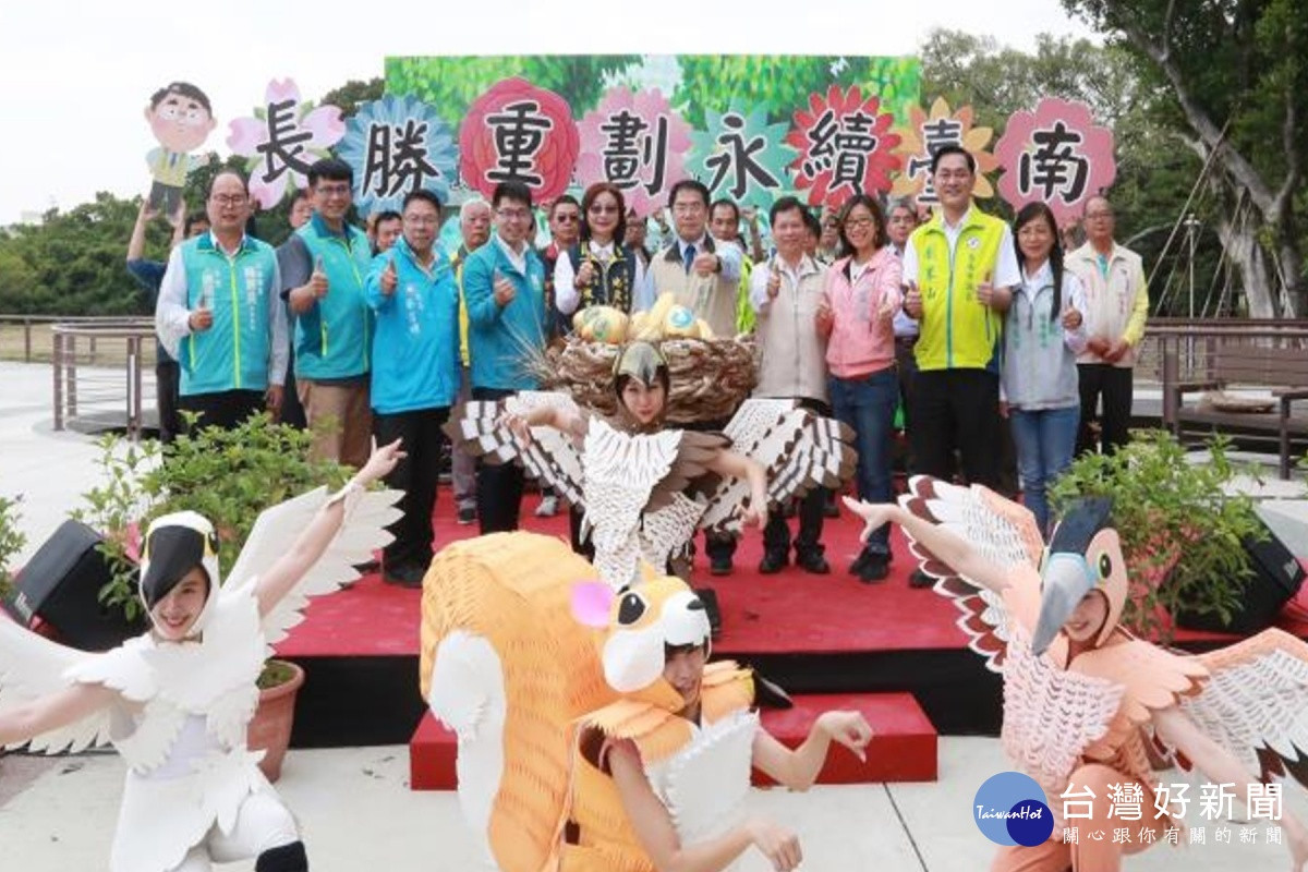 黃偉哲市長表示,自88 年陸軍部隊撤出長勝營區後荒廢近20 年,市府透過都市計畫變更,採低衝擊開發方式,保留林蔭、生態及軍方舊建築遺蹟,開發過程平和順利。營區重劃工程歷經500多天後完工啟用,市議員蔡育輝、李宗翰、穎艾達利、劉米山、沈家鳳等多人出席啟用儀式。