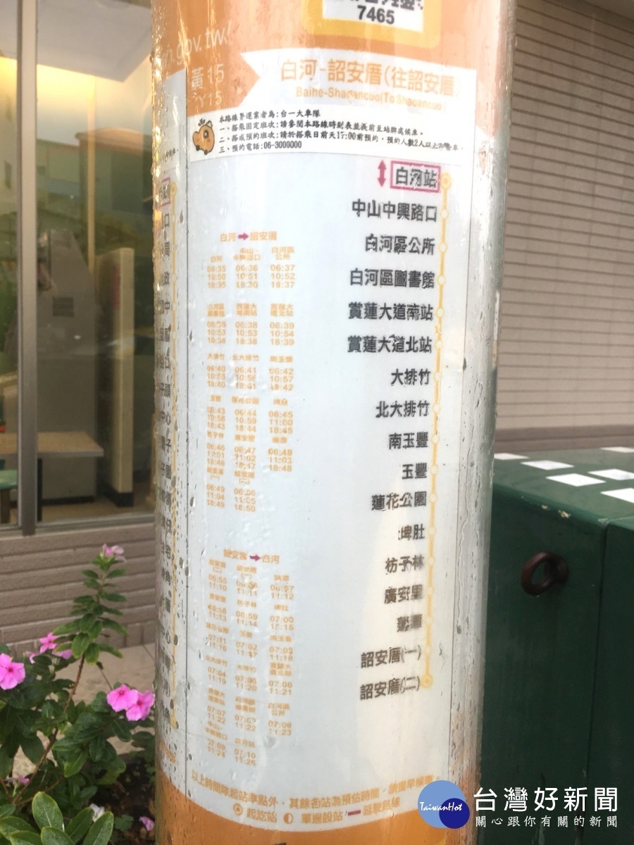 位於白河區中山路與國泰路口超商旁的幸福小黃站牌/陳致愷攝影