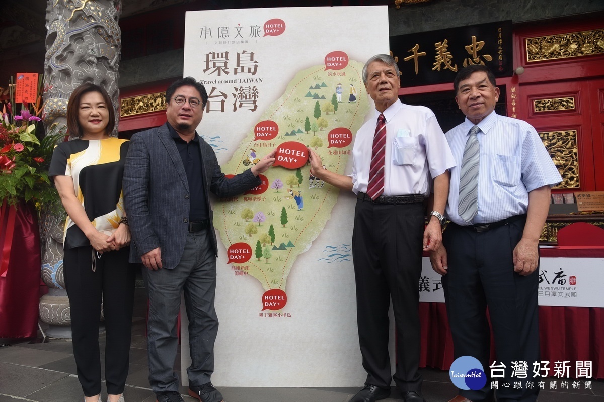 景聖樓是該集團第7間文創旅店。〈圖右1陳副縣長、右2文武廟管理委員會董事長張德林、左2承億文旅集團創辦人暨董事長戴俊郎、馬文君立委〈左1〉