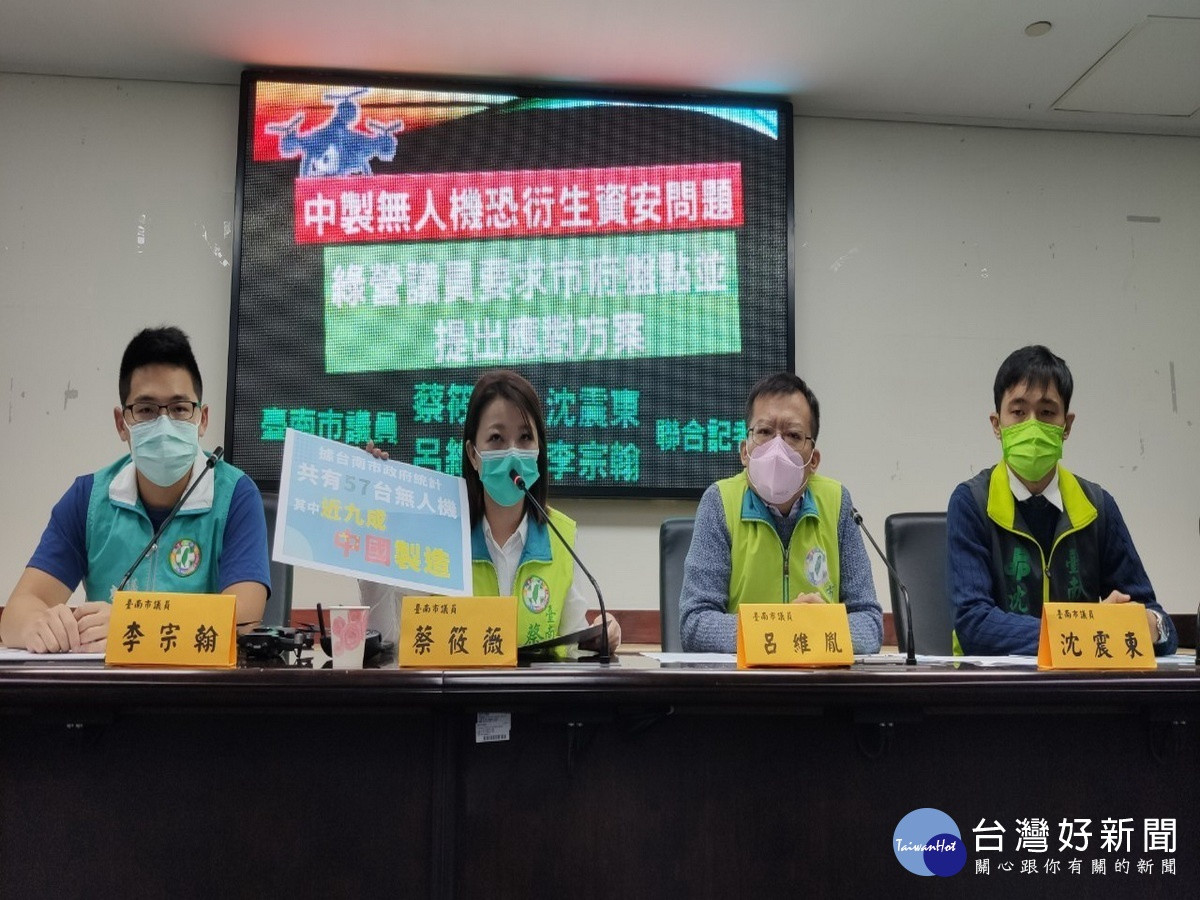 中國製無人機的安全隱患,近年來引發多方關注,民進黨市議員蔡筱薇、李宗翰、呂維胤、沈震東,16日於市議會召開記者會, 要求市府重視中製無人機衍生的資安問題,並提出相關應對策略。市府允諾將逐年汰換中製無人機,預計於113年汰換完成。