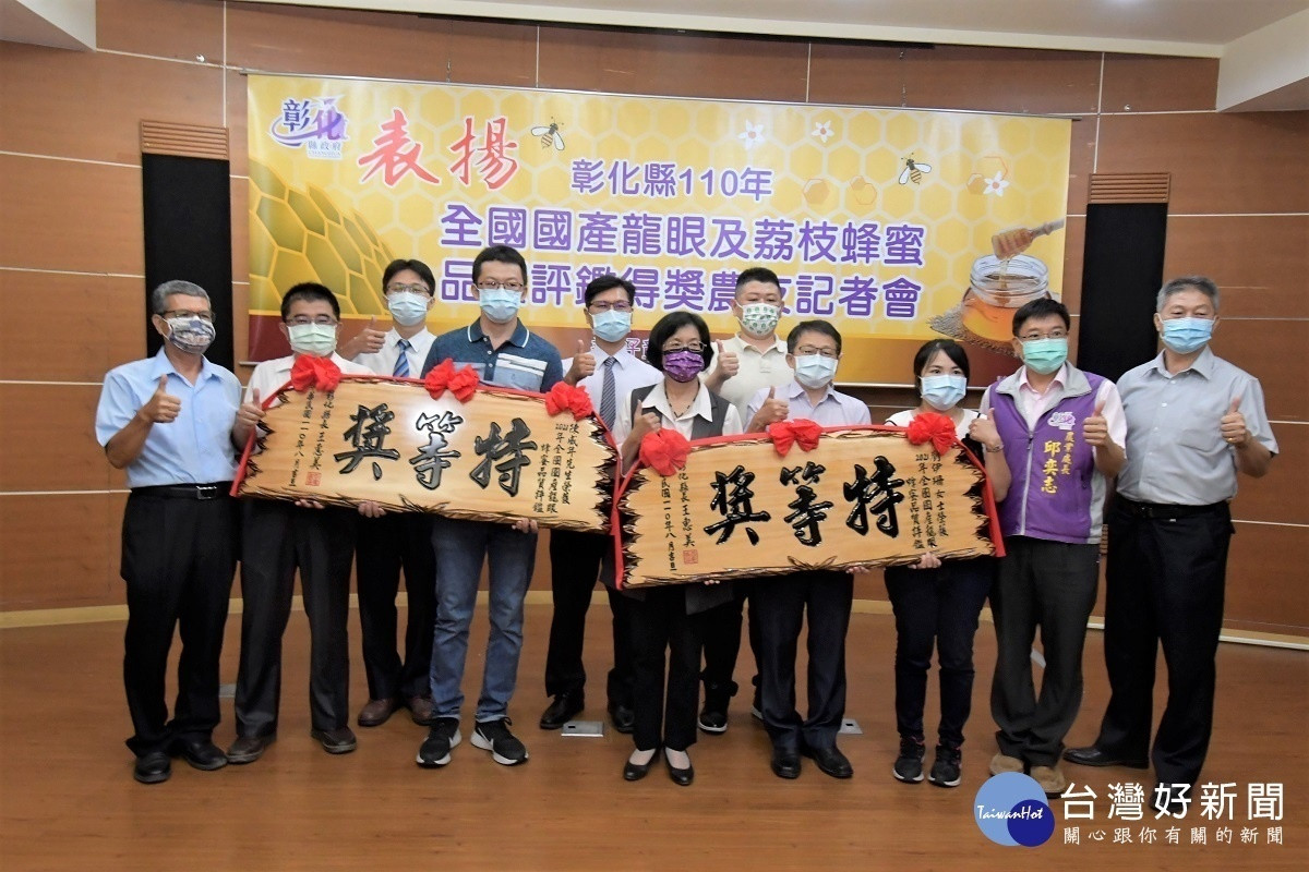 彰化縣蜂蜜品質優良,今年再次從全國各地蜂農精選的蜂蜜參賽中脫穎而出,龍眼蜂蜜特等獎2人及頭等獎17人,荔枝蜂蜜頭等獎6人,共25位蜂農得獎,佔全國20%,五分之一,彰化縣長王惠美30日公開表揚肯定,並力推「彰化優鮮」品牌,持續推廣優質農產品。