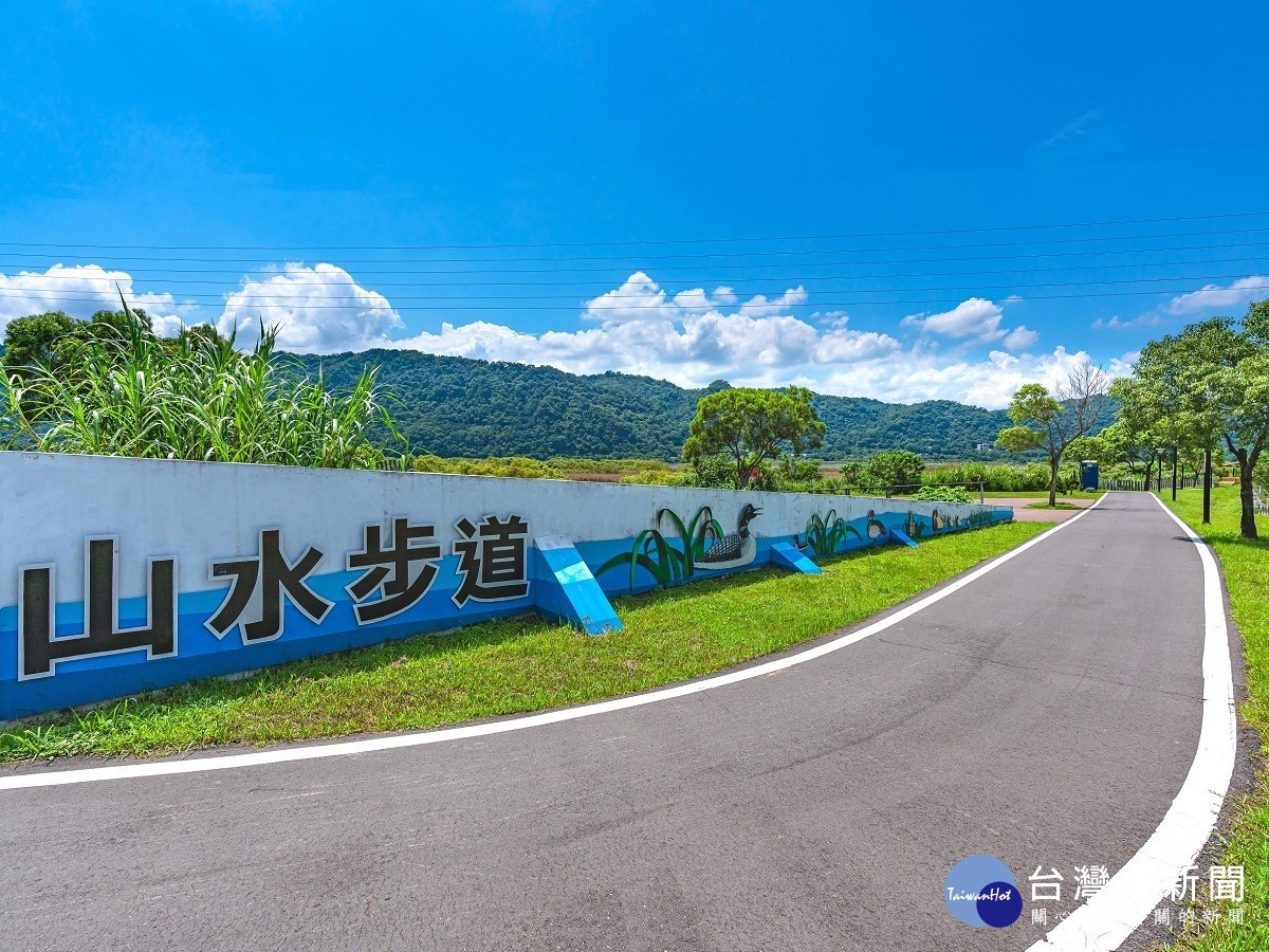 高灘處指出,去年市府於山水步道周邊設置1處汽、機停車場, 方便民眾前往此處休憩不用擔心車輛停放問題, 另一旁的丘陵高處設有觀景涼亭,讓人可以登高體驗大自然的美好。 為提供不同的休憩體驗,市府今年於河畔側增設2組休憩搖椅, 民眾在搖椅上吹著徐徐微風,依靠著美麗的河岸, 悠悠哉哉觀賞山湖景色, 彷彿與世隔絕般享受著悠閒自得的愜意人生。