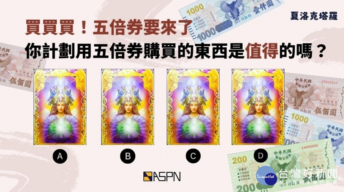 這張牌想告訴你,雖然可以把五倍券花在這項東西上,但這件物品對你來說並沒有那麼急迫,也不是一定需要的東西。只不過現在對你而言,要嘛是需要的東西五倍券也買不到!亦或者該買的早就都買了,所以才會暫時沒有太急迫需求的東西。建議你可以先放著,等到五倍券的使用期限來臨之前再做決定,當然如果不想太麻煩,也可以用在你目前腦海中構思的東西上,雖然不會有物超所值非買不可的感覺,但至少買了之後,還是能為你帶來一定程度的理想回饋哦!