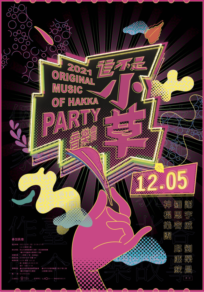 主任委員徐世勲表示,《這不是小草》音樂專輯的意涵是想表達每一個人都像是根小草,在臺北這個城市裡無畏風雨展現頑強的生命力,以堅靭的精神,不斷茁壯成長,並以此作為專輯延伸的概念表現在音樂的細節中。音樂會挾帶積累的文化與音樂底蘊,邀請跟著謝宇威、羅思容、劉榮昌、邱廉欽、神棍樂團,來一場跨世代的搖晃復古派對吧!活動詳情可至臺北市政府客委會官網或「臺北客家」臉書查詢。