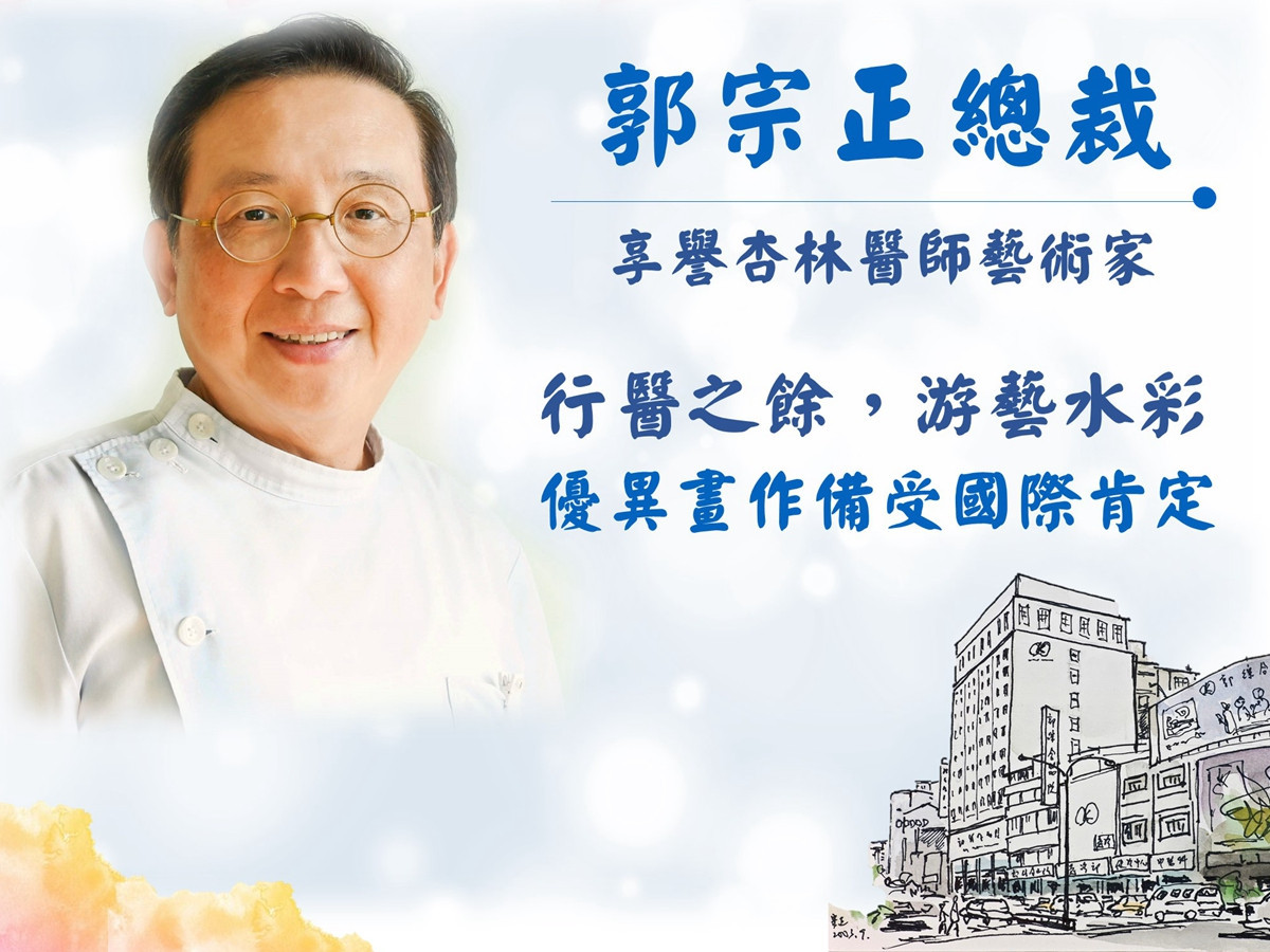 醫師畫家郭綜合醫院總裁郭宗正,在台北國父紀念館舉辨的水彩創作展,吸引各界愛好藝術人士爭相欣賞,冠蓋雲集,熱鬧非凡,國父紀念舘長王蘭生盛贊郭總裁的水彩創作令人欽羡,展出作品很精彩,畫作帶來初春喜訊,展至期3/6止。