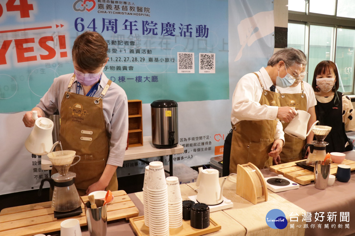 嘉義基督教醫院64周年院慶,創院院長戴德森醫師孫女戴愷如與院長手沖咖啡義賣,重溫創院之初的感動/嘉基提供