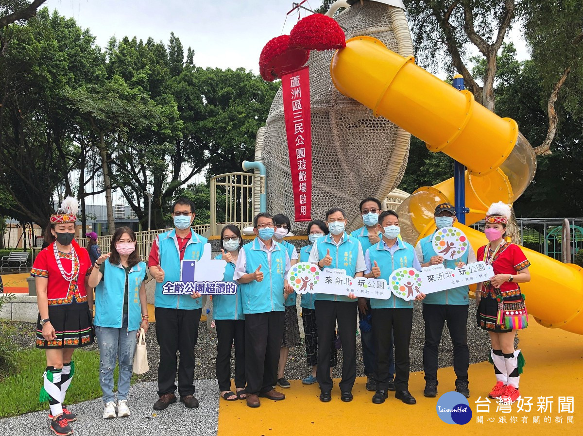 蘆洲區三民公園遊戲場今(16)日啟用,蘆洲區長莊茂坤表示,遊戲場主要由新北市政府地政局補助,也特別感謝李坤城議員及宋雨蓁議員爭取補助經費,遊戲場建造面積約850平方公尺,工程推動前期與忠義國小合作,透過工作坊與小朋友互動交流,提供公所諸多寶貴的意見,使遊戲場設計跳脫以往框架,為蘆洲帶來與眾不同的遊戲風格。