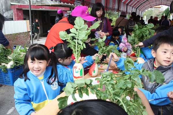 頭屋鄉農會總幹事涂漢仁表示,雖然受到下雨天候的影響,今年蘿蔔產量較往年減少只剩下約3分之一的產量,但品質卻絲毫不受影響,歡迎鄉親共同參與歡度周末假期,順便討個「好采頭」。主辦單位日前特別邀請頭屋、苗栗市兩所幼稚園小朋友到現場彩繪蘿蔔,幼兒們們各自發揮巧思認真專注的將白蘿蔔塗上五顏六色的顏料,為現場增添一番樂趣。