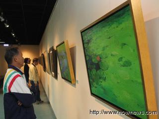 「坐看雲起-2011沈東榮油畫個展」正在宜蘭縣政府文化局第一展覽室展出,將展到11月30日,計有約35件油畫作品,這回展出蓮花系列主題,呈現深淺不一的盎然綠意,引人欣賞。縣長林聰賢、林素雲夫婦,20日到場欣賞畫作之後表示,很想進入畫畫的意境之中。