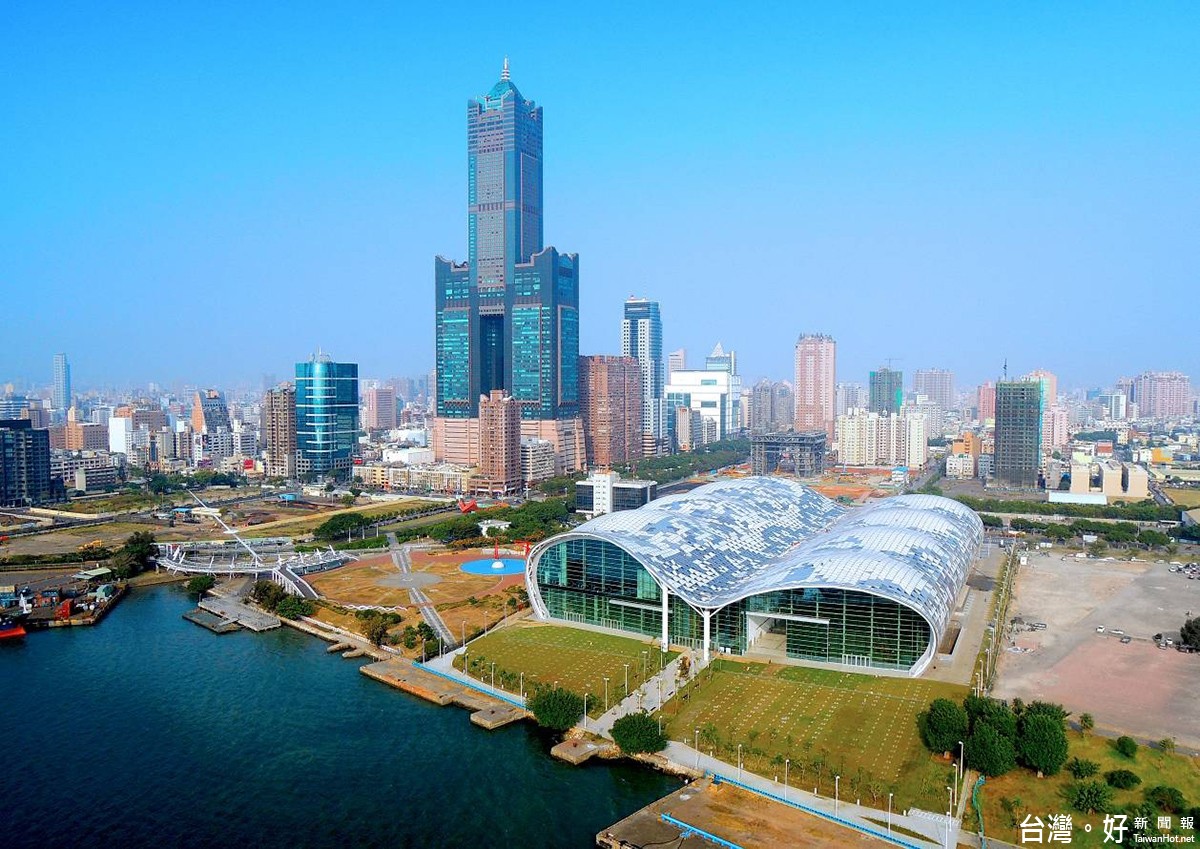 「高雄展覽館」(高雄世界貿易展覽會議中心)採用前衛波浪造型,結合船帆與地殼意象的建築帷幕,建築內設計挑高27公尺、跨距50公尺之無柱空間設計,外部覆蓋1萬多片玻璃帷幕單位尺寸皆不同,施作難度高,是國內唯一符合大型機具及船舶展示的會館,地面層的中央內街延伸既有林森路的街道脈絡,讓市民藉由入口廣場穿越展覽館,到達水岸開放空間,還可藉煙囪效應引入對流空氣,減少室內空調,達到節能舒適的效果。
