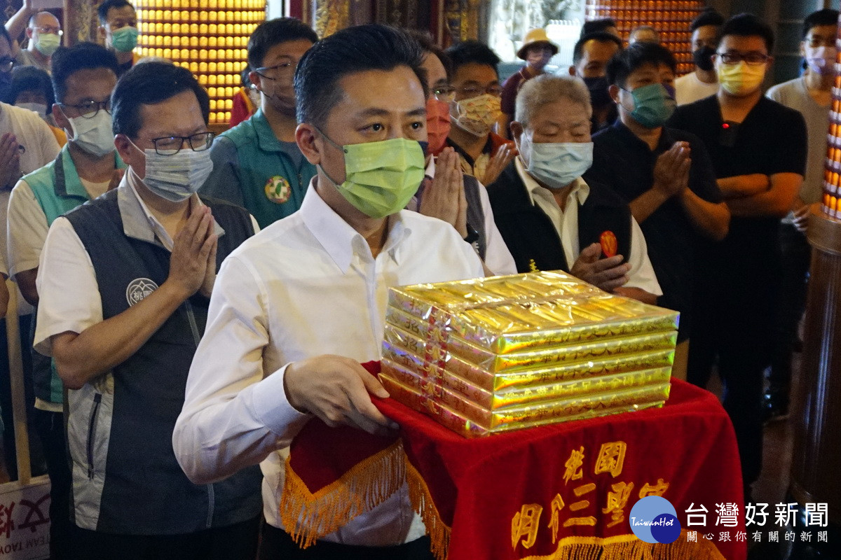 前新竹市長林智堅於虎頭山明倫三聖宮參拜獻金帛。