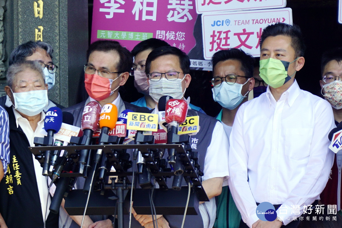 前新竹市長林智堅宣布退出桃園市長選舉,由立委鄭運鵬接棒上場,民進黨桃園「鐵三角」桃園市長鄭文燦、鄭運鵬、林智堅13日公開露面,選擇在虎頭山明倫三聖宮參拜。林智堅表示,他退出桃園市長選舉,到另外一個戰場來悍衛自己的清白,他像是棒場賽中的「先發投手」受傷,接受教練團的指揮下場,由「王牌中繼投手」鄭運鵬接替上場。林智堅希望大家把對他的不捨化為支持鄭運鵬的力量,打贏桃園市長這場選戰。