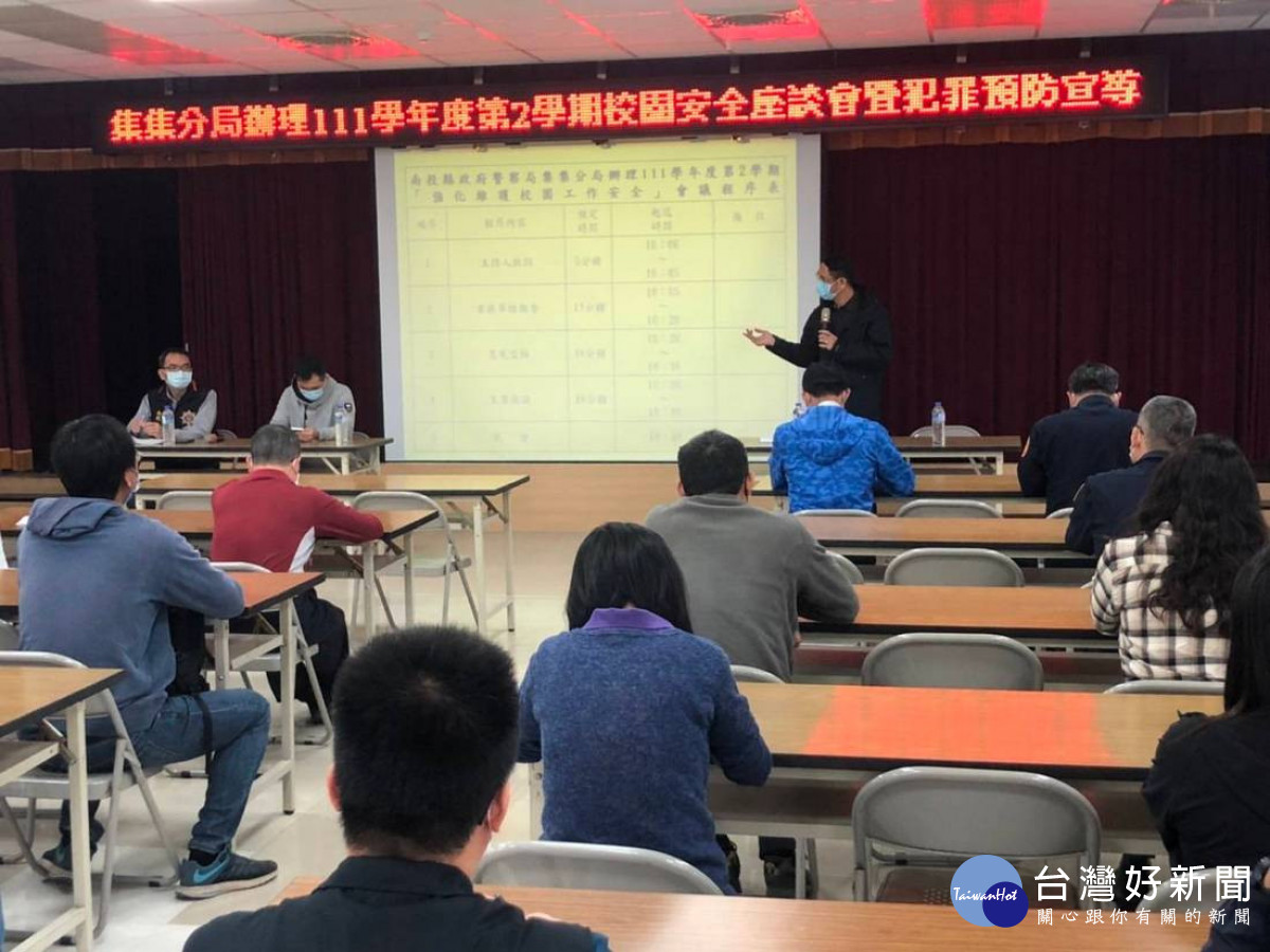 集集分局邀集轄區26所小學、國、高中校長、主任、組長及分局各級幹部,在該分局會議室舉行111學年度第2學期「校園安全座談會」。
