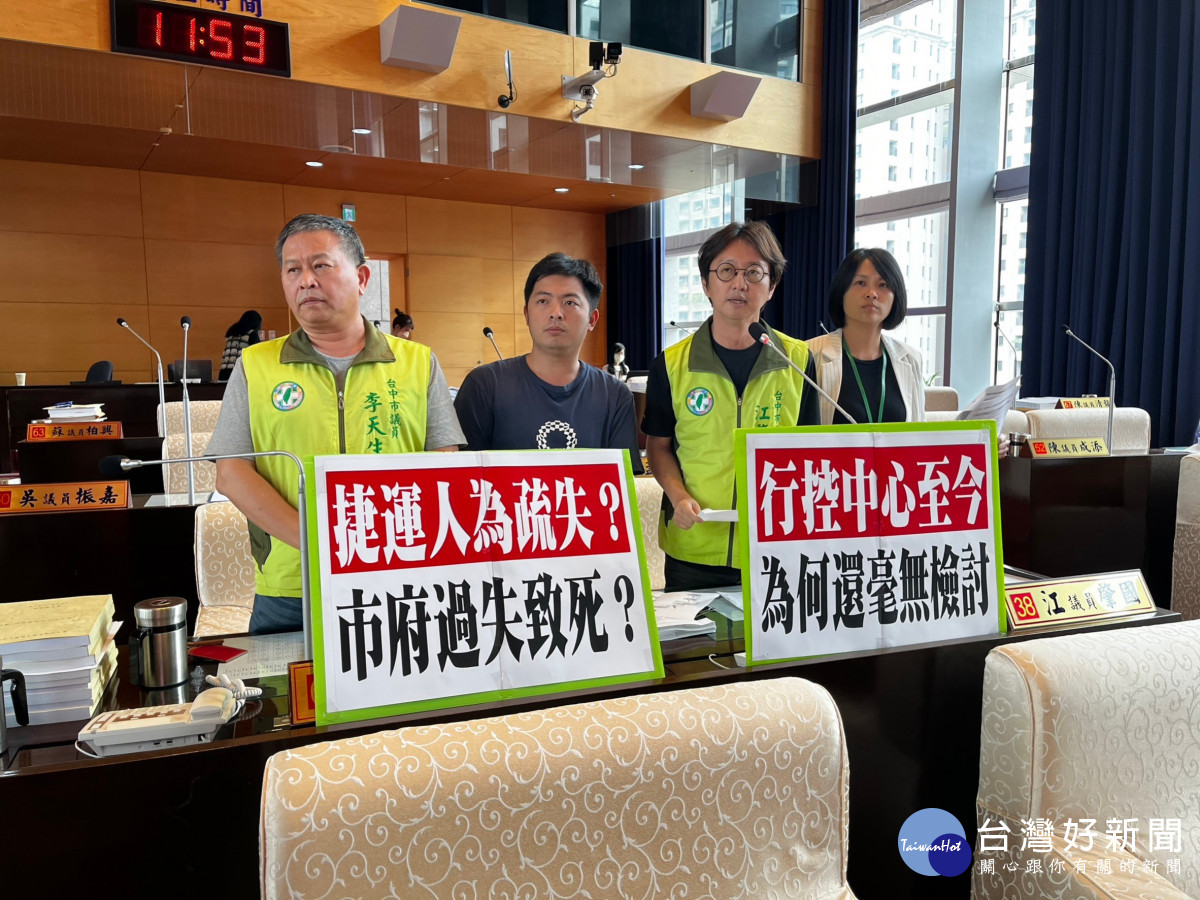 市議員江肇國(右二)追蹤中捷事故原因,發現中捷營運2年來進行超過百場的演練sop竟無一場是「異物墜落」!市議員江肇國提供