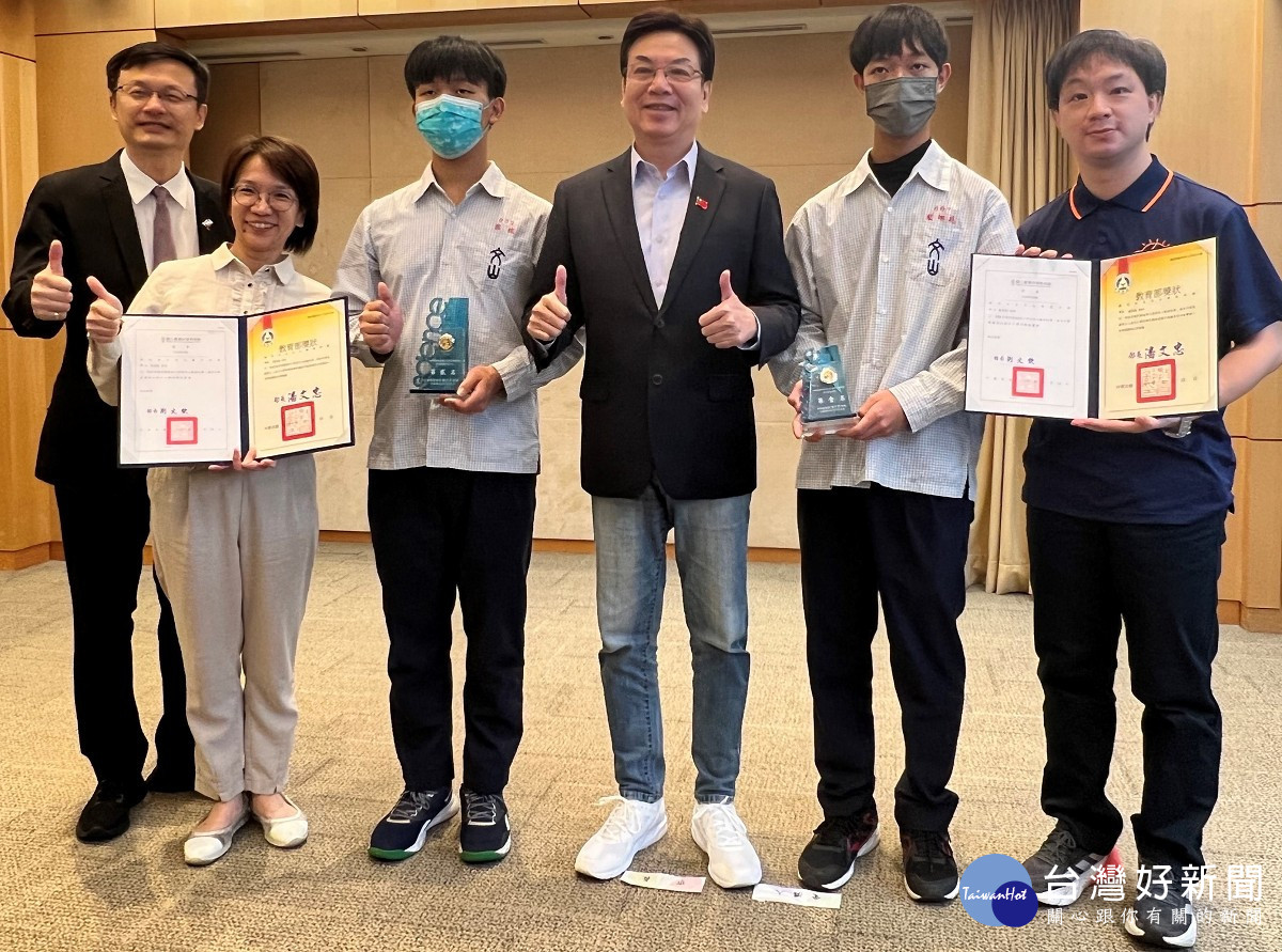 海山高中(國中部)以作品「小「兵」立大功-可攜式乒乓發射器應用於智慧訓練之研製」榮獲國中組生活與應用科學科(一)第1名,陳柏宏及吳翰泰同學表示,從零開始到最後的國賽第一,感謝指導老師林周廷和張惟捷老師,以及新北團隊專家老師的支持。