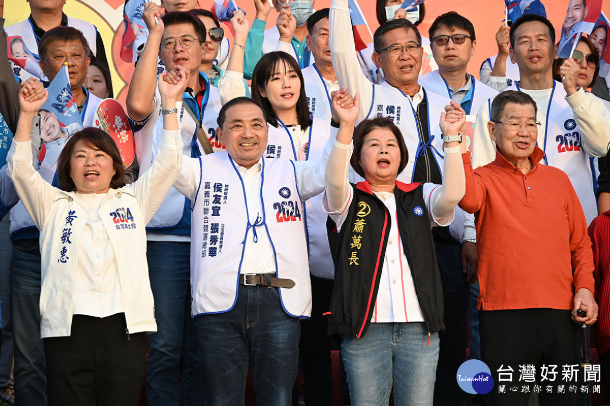 國民黨總統參選人侯友宜及嘉義市立委參選人張秀華,今(19)日在嘉義市文化公園舉行聯合競選總部成立大會,前副總統蕭萬長、嘉義市市長黃敏惠、國民黨議員及各界人士都到場力挺。蕭萬長將民國84年返鄉參選立委的背心,親手交給張秀華象徵傳承;張秀華現場再提四大政見,侯友宜承諾當選總統後將全力協助,「嘉義人說到做到」呼籲大家團結,讓嘉義市脫胎換骨。