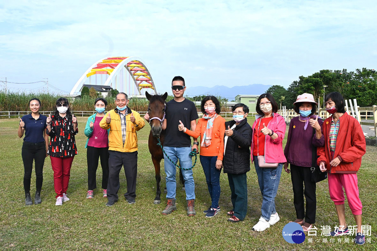 嘉義市長期照顧管理中心辦理「2023嘉義市政府富邦家庭照顧者喘息之旅」活動,到馬場體驗馬術/林詩涵攝影