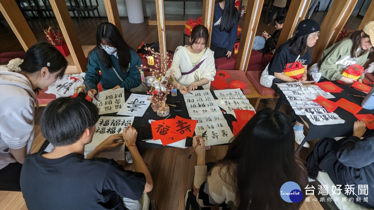 梁韵嘉說,透過寫春聯的方式,將不同的祝福和文化融合在一起,共同迎接農曆新年的到來。活動中也致贈新春福袋予同學,福袋中裝滿了各種臺灣傳統零食,為了永續愛地球,特別選用了有「福」字的紅色不織布束口袋,讓學生們在享用零食後,還可以將禮袋用來裝點個人物品,體現環保的理念。