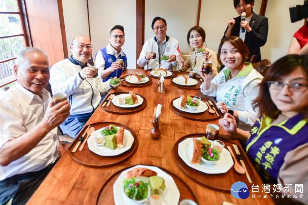 張善政市長與出席貴賓共同揭開,由市民票選出來的館舍名稱「延平路食農故事館」,張市長談到,文化資產維運不易,需在維持原有文化氛圍的同時,找出特色加以推廣,特別感謝蕃薯藤有限公司承攬營運工作,推廣食農教育及有機食品;隨後與出席貴賓一同於館內體驗在地特色有機輕食,並參觀生物動力堆肥「蚓田箱」以及現場種植的食用香草植物,了解生態循環農業示範區設置情形。