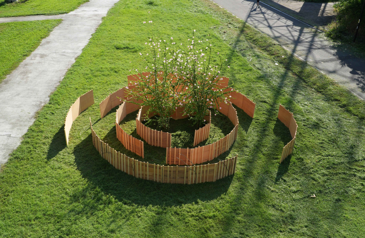 此外,李蕢至的《棲種之所》以竹編打造圓形庇護空間,