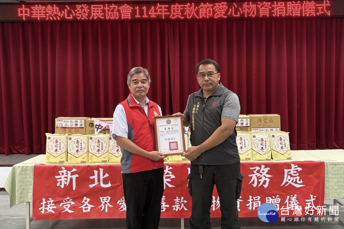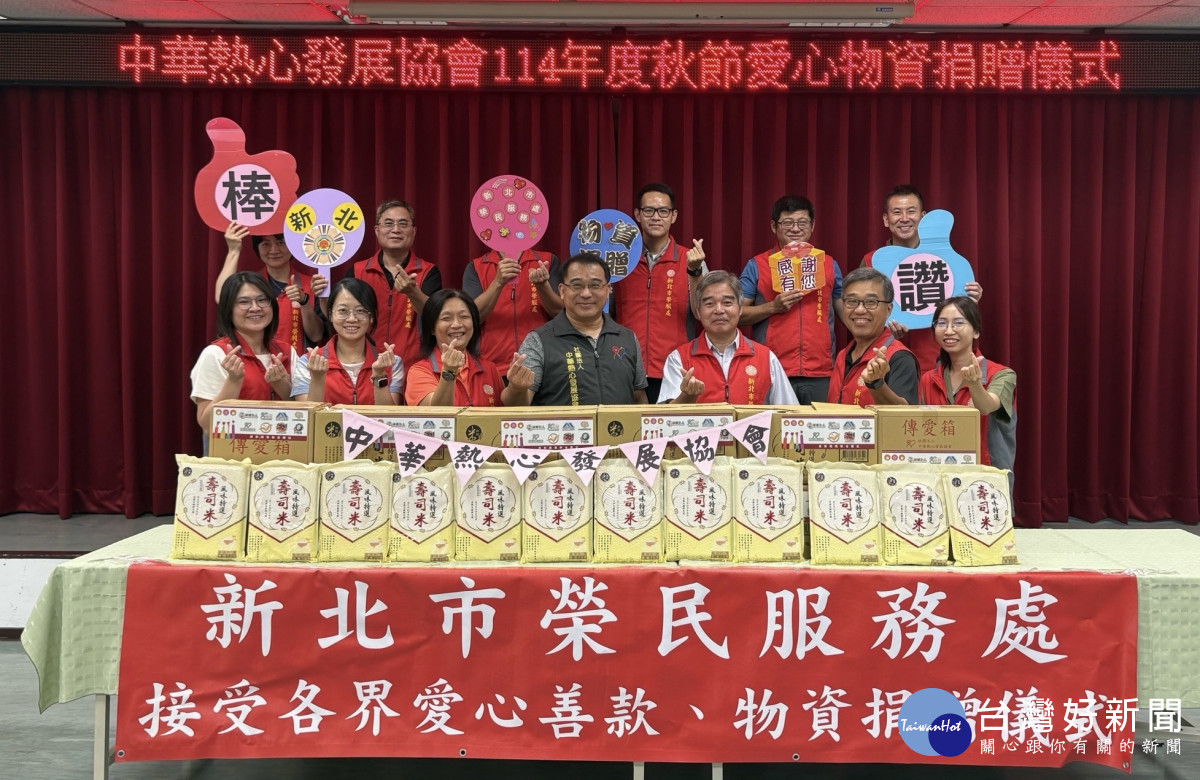 中秋佳節將至,社團法人中華熱心發展協會捐贈100包白米,委由新北市榮服處代為贈予具需求的榮民及眷屬。捐贈儀式由協會副秘書長王豊博代表出席,處長林振生感謝協會長年提供物資,持續協助榮民家庭。並指將秉持為榮民服務的初心,持續為榮民家庭注入溫暖有力的支持。同時也祝福每位榮民都能與家人團聚,過個平安圓滿的中秋佳節。