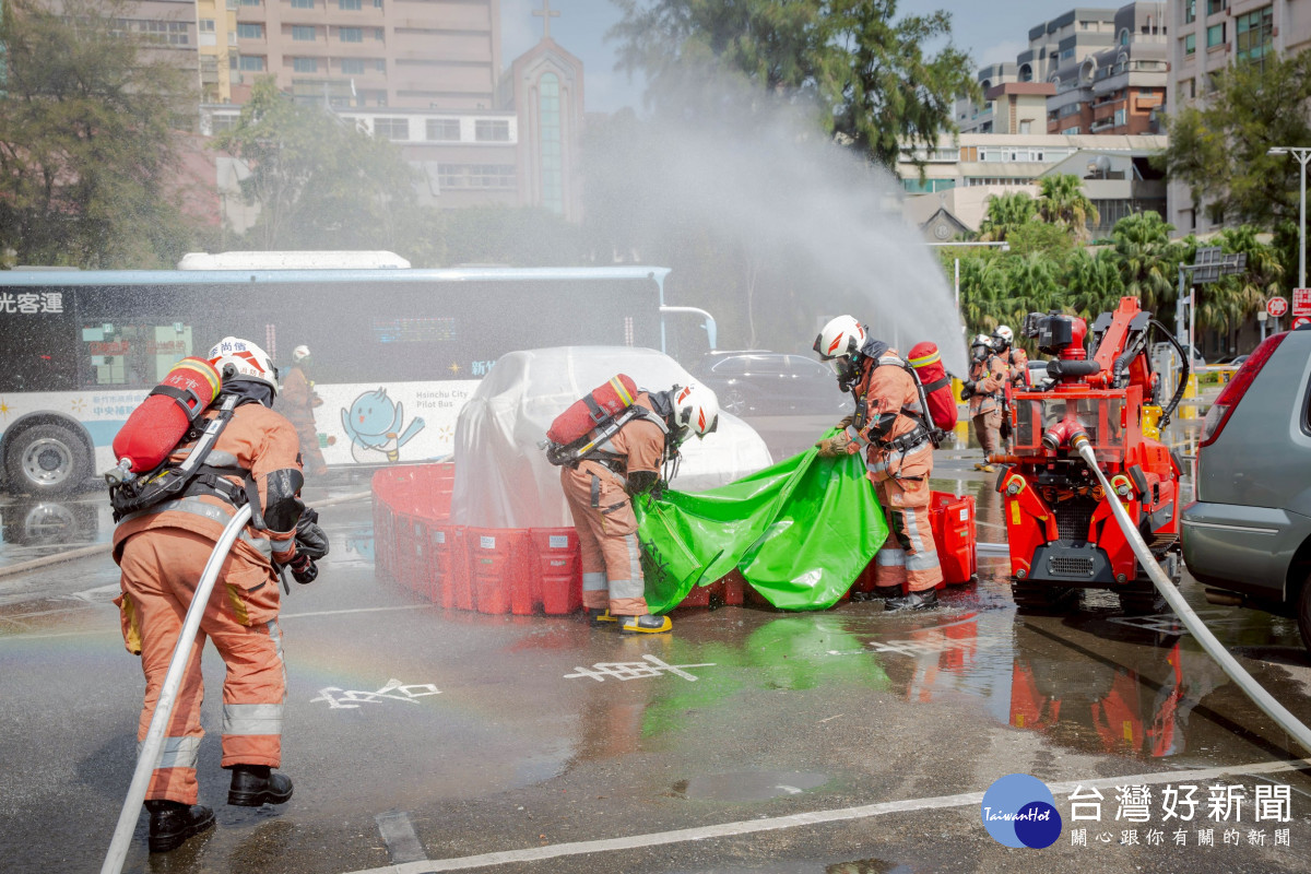 竹市電動公車暨電動車事故救災演練實況。
