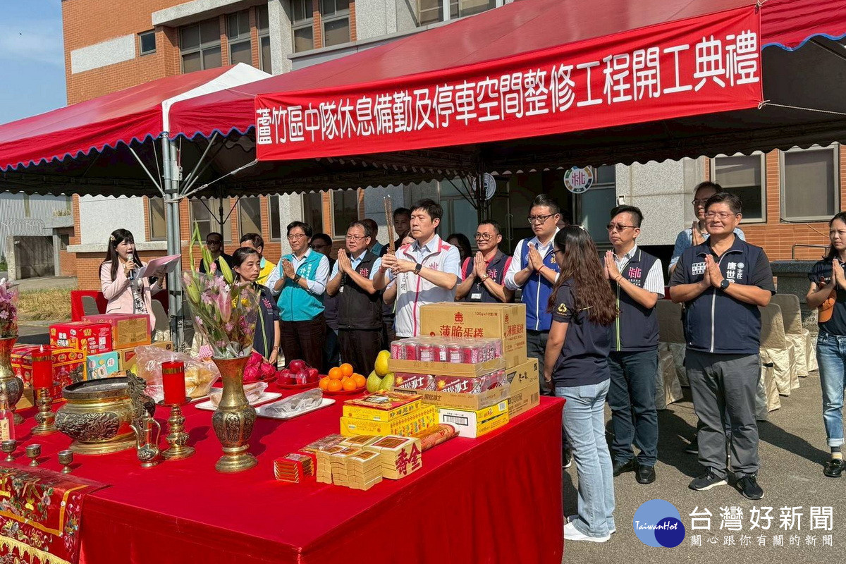 桃園市政府環境管理處2日於蘆竹區大華北街166號舉辦「蘆竹區中隊休息備勤及停車空間整修工程」開工典禮,由環保局長顏己喨主持,並邀集地方民代、區公所、里長及施工團隊共同出席,見證工程啟動。