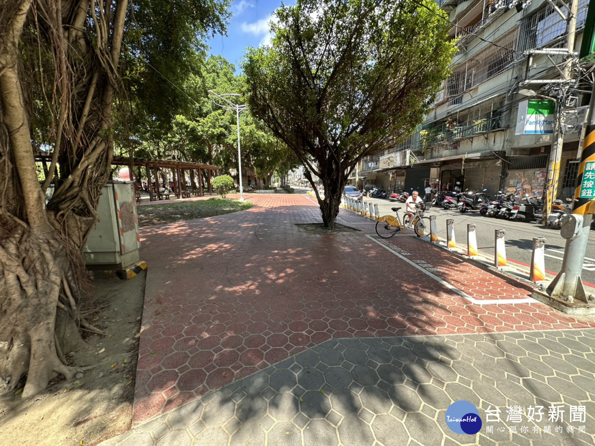 此外,為改善雨天積水問題,工程採用擴大樹穴串聯形成綠帶增加排水面積,友善對待植物生長,內側植栽區底層施作碎石透保水工程並設置路緣石防止水流外溢人行道,整體改善後的人行道無論是視覺或行走體驗都大幅提升。