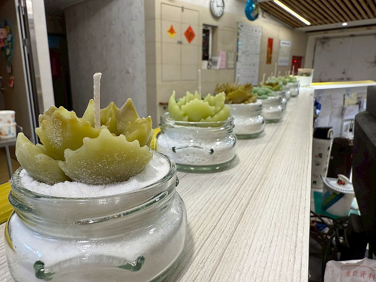 活動中,講師循序引導長輩從挑選香氛、融化蠟材,到倒模塑型與裝飾多肉造型,每個步驟都充滿新鮮感與成就感。隨著香氣在教室中瀰漫,長輩們專注而投入地創作,完成的作品不僅散發淡雅清香,更承載了對佳節的美好祝福。許多長輩望著親手完成的多肉香氛蠟燭,臉上堆滿笑容,直呼這是「最特別的中秋禮物」。