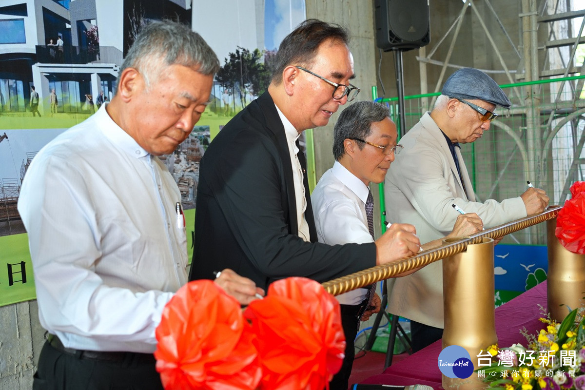 「喜樂方舟園區」自106年開始籌備,歷經三千多個日子,走過募款艱難、材料成本高漲與人力短缺等重重挑戰,今日迎來上樑儀式。這不僅象徵建築主體結構完成、工程將邁入最後施工階段,更代表對建築安全與未來服務的祝福與祈求。
