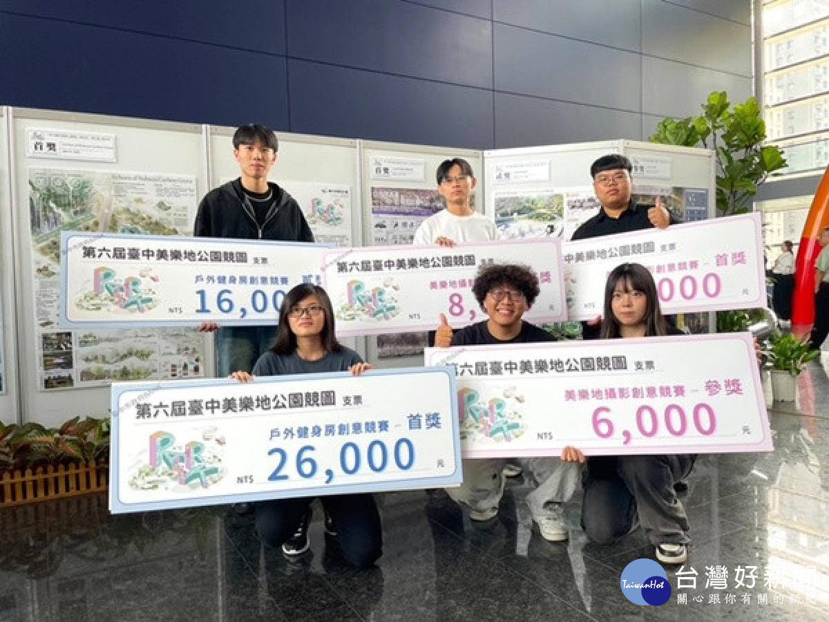 臺中市政府建設局主辦「2025第六屆臺中美樂地公園競圖-碳中和公園」吸引全國大專校院共248件學生作品參賽,最終由朝陽科技大學景觀及都市設計系學生張禾蓉以作品〈以自然為幕,在林間起舞〉榮獲戶外健身房創意競賽首獎,蘇杰毅則以作品〈車輪下的童年夢〉榮獲美樂地公園攝影創意競賽首獎,表現十分優異。