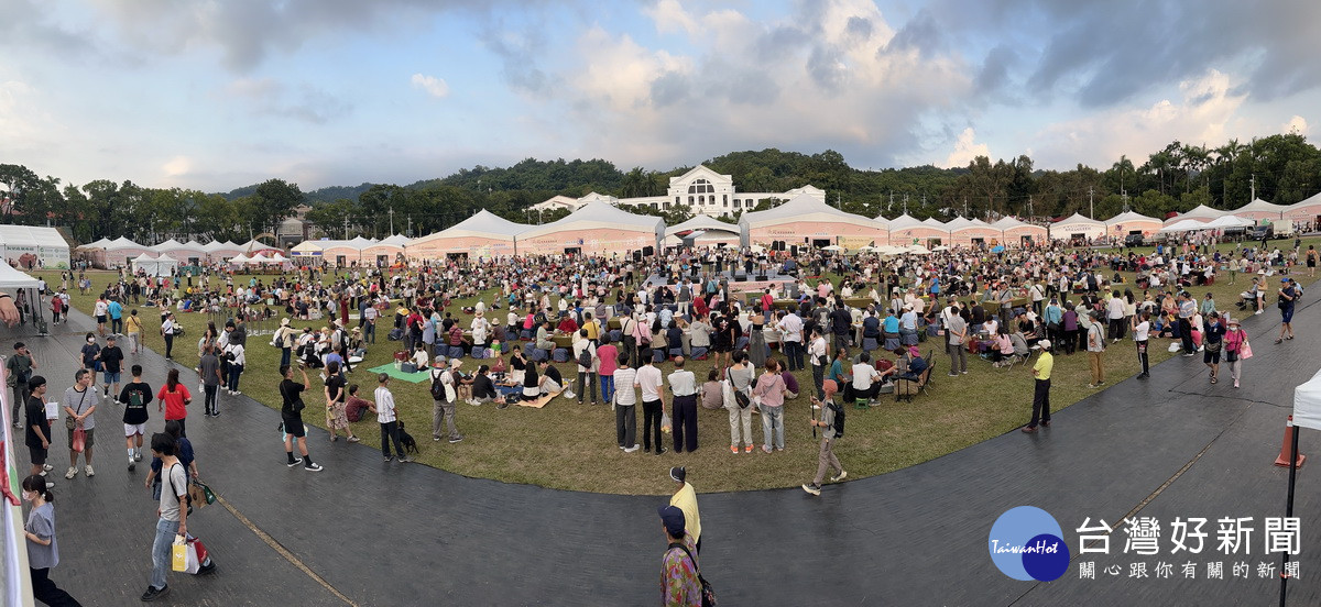 千餘民眾喝好茶聆賞台上樂團表演。(記者扶小萍攝)