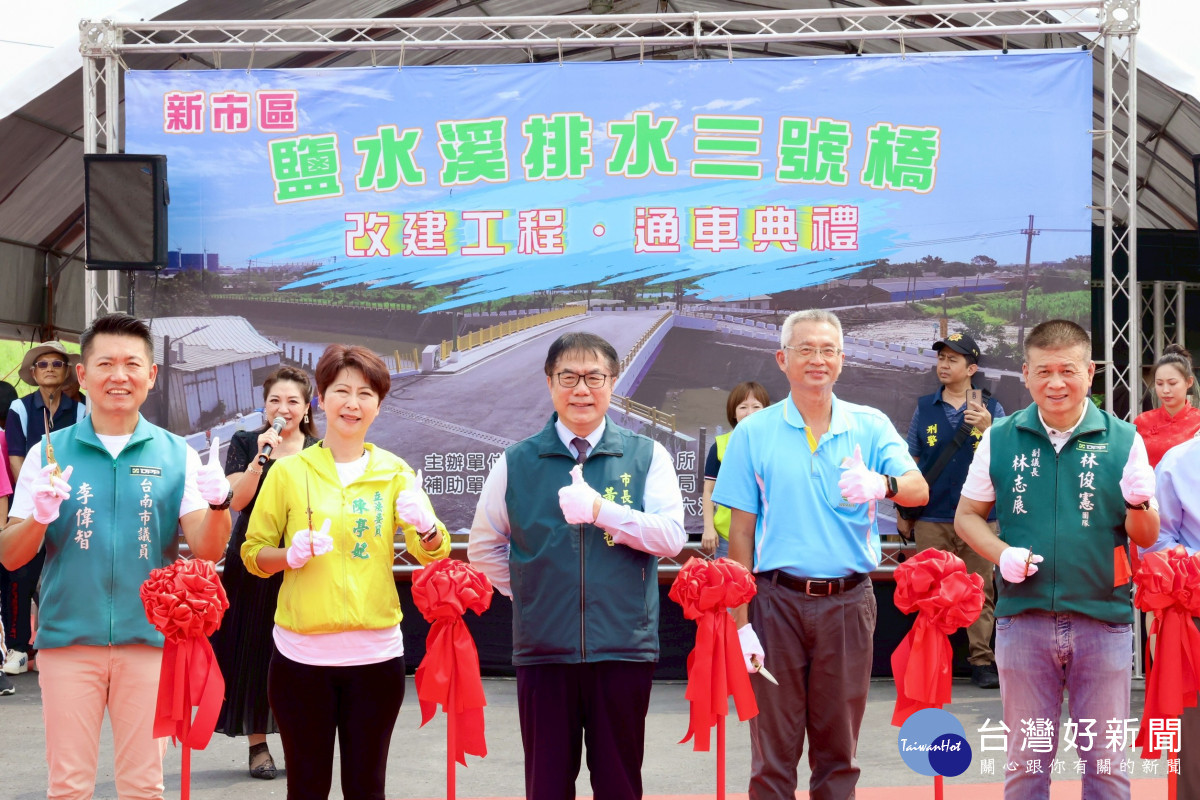 台南市新市區連結安南區、安定區及南科周邊的重要幹道-鹽水溪排水三號橋,今(7)日舉行通車典禮,市長黃偉哲表示,新橋啟用後,不僅縮短通行時間,還將提升通勤便利與產業運輸效率,帶動區域發展動能。