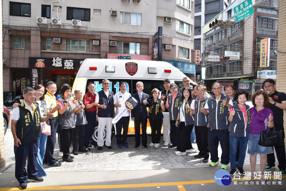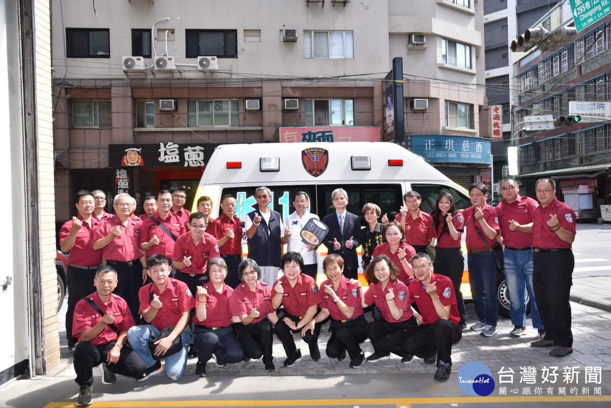 為提升板橋區緊急救護效能,永福企業郭枝群、郭建文總經理代表父親、前董事長郭永福先生完成長年心願,今(8)日於第一救災救護大隊板橋分隊舉行救護車及急救設備捐贈典