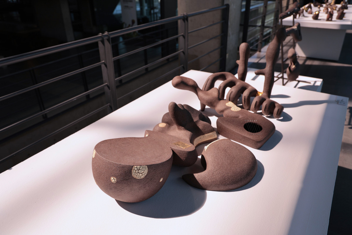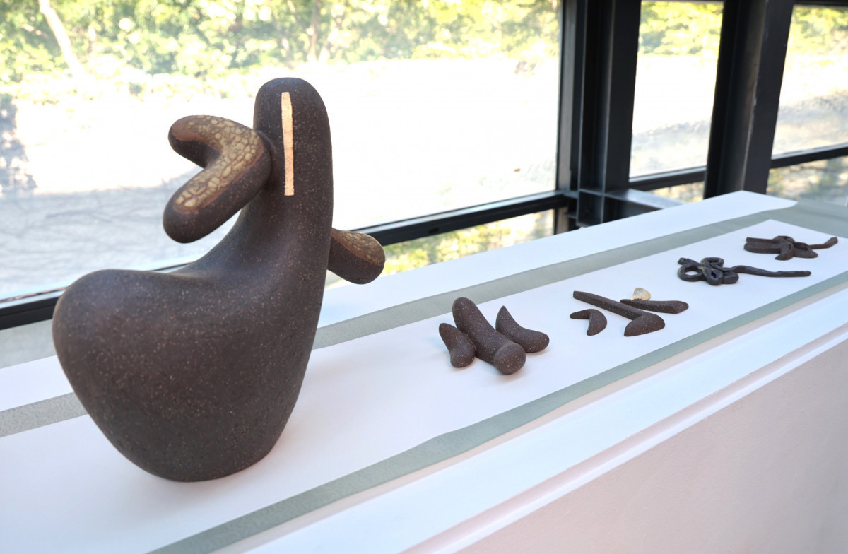 陳庭怡以「漢字」為創作核心,運用陶瓷媒材從「字裡行間」探索文字的形體之美。對她而言,書寫與閱讀的過程蘊藏著無窮魅力——在成長經驗中,她細察文字的結構、筆觸與韻律,並將這些元素轉化為立體的陶瓷創作。個展延續創作脈絡,「展字系列」以「花、水、鳥、樹」等常見於傳統水墨畫的意象為題,透過如草書般流動的文字線條,讓字逐步演化為立體造形,呈現出文字之間的節奏與趣味。