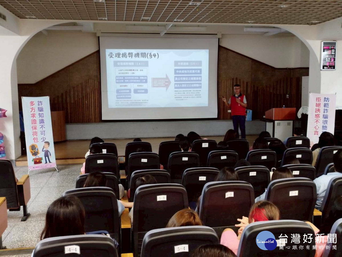 消防局政風室主任林三龍幽默解說及分析,消防員工作內容、辛苦及公務職場應遵守之倫理規範與揭弊者保護法,讓學子離開校園,投入公務職場服務後一旦遇有不法或可疑情事,如何主動揭弊、勇敢舉發及保護機制,為公務員打造多層次安全防線。