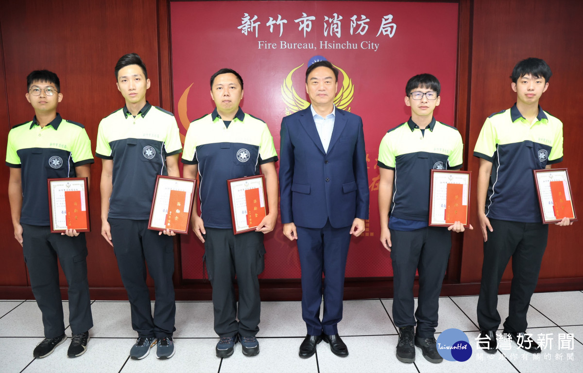 香山分隊消防員鄭暐翰、陳宏軒、李柏毅、吳駿沅成功為患者爭取搶救契機。