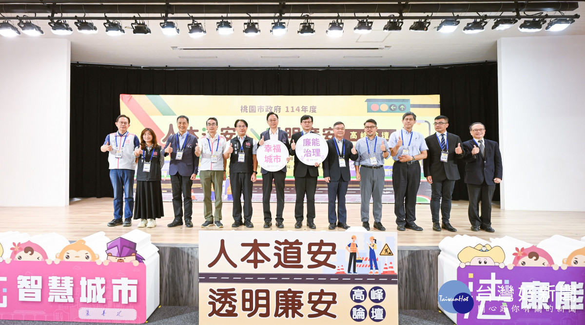 桃園市長張善政出席「114年『人本道安.透明廉安』高峰論壇」與貴賓們合影。