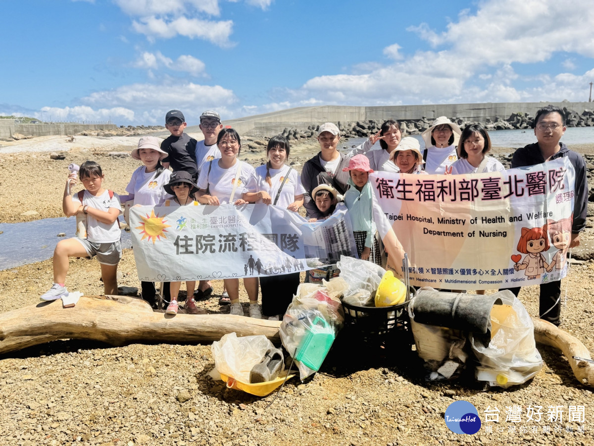 臺北醫院護理科於北海岸和東北角海風吹拂的岸邊,護理師們拿起的不再是針劑、護理包、開刀器械,而是夾子、垃圾袋、棉布手套。每場活動動員15至20人參與,歷時約一小時,包含多位護理主管、護理師與眷屬熱情響應。活動結束後也一同前往周邊用餐與旅遊,讓環保行動與健康生活自然結合,在日常中實踐永續。