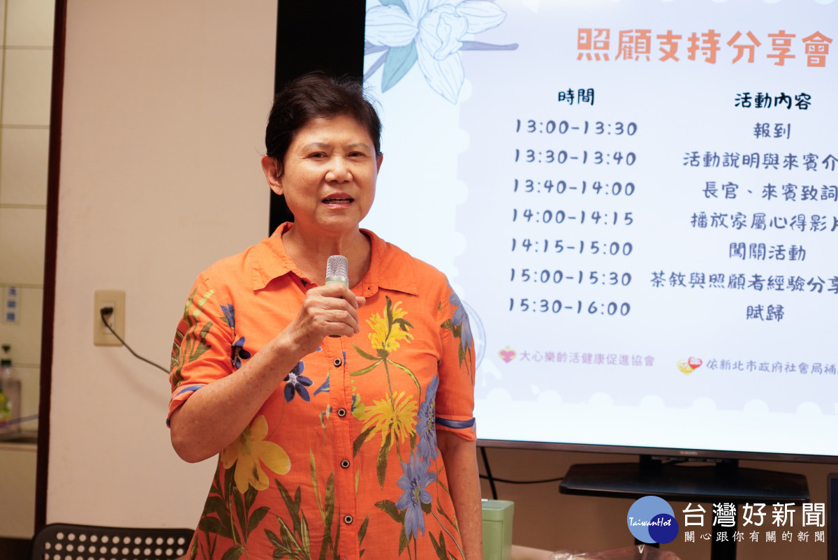 在分享會中,75歲的家庭照顧者鄭桂香說,她獨自照顧輕度失智的先生十年,因為先生會出現幻覺與妄想,必須時時刻刻關注一舉一動,深怕他下一秒又給鄰居添麻煩。有次,她到長照據點參加活動,發現這竟是她最快樂、最放鬆的時光,讓她深刻體認到「要先關照好自己的心,才有力氣照顧別人」。
