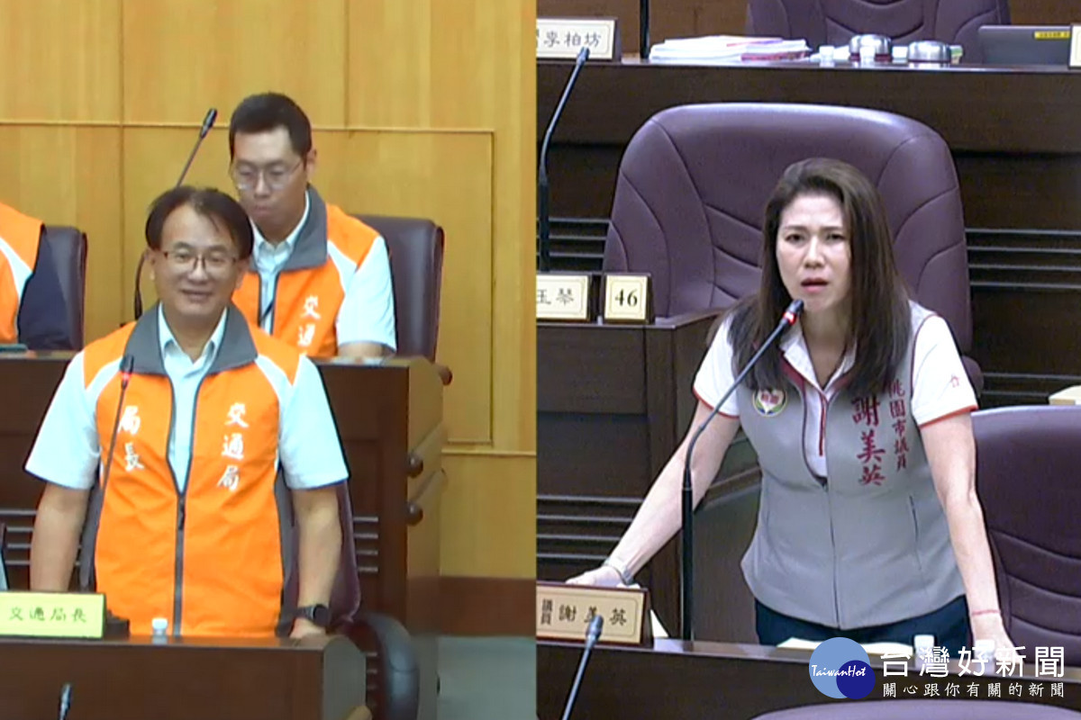 桃園市議員謝美英於議事堂進行質詢。