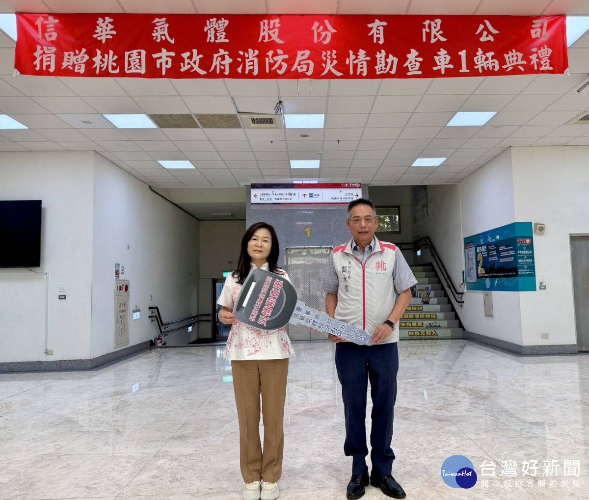 為強化地方消防應變能力,信華氣體股份有限公司於近日捐贈「災情勘查車」1輛予桃園市政府消防局,指定配屬緊急救護科使用。捐贈典禮於消防局的1樓大廳舉行,由龔永信局長代表受贈,充分展現社區回饋社會、守護家園的具體行動。