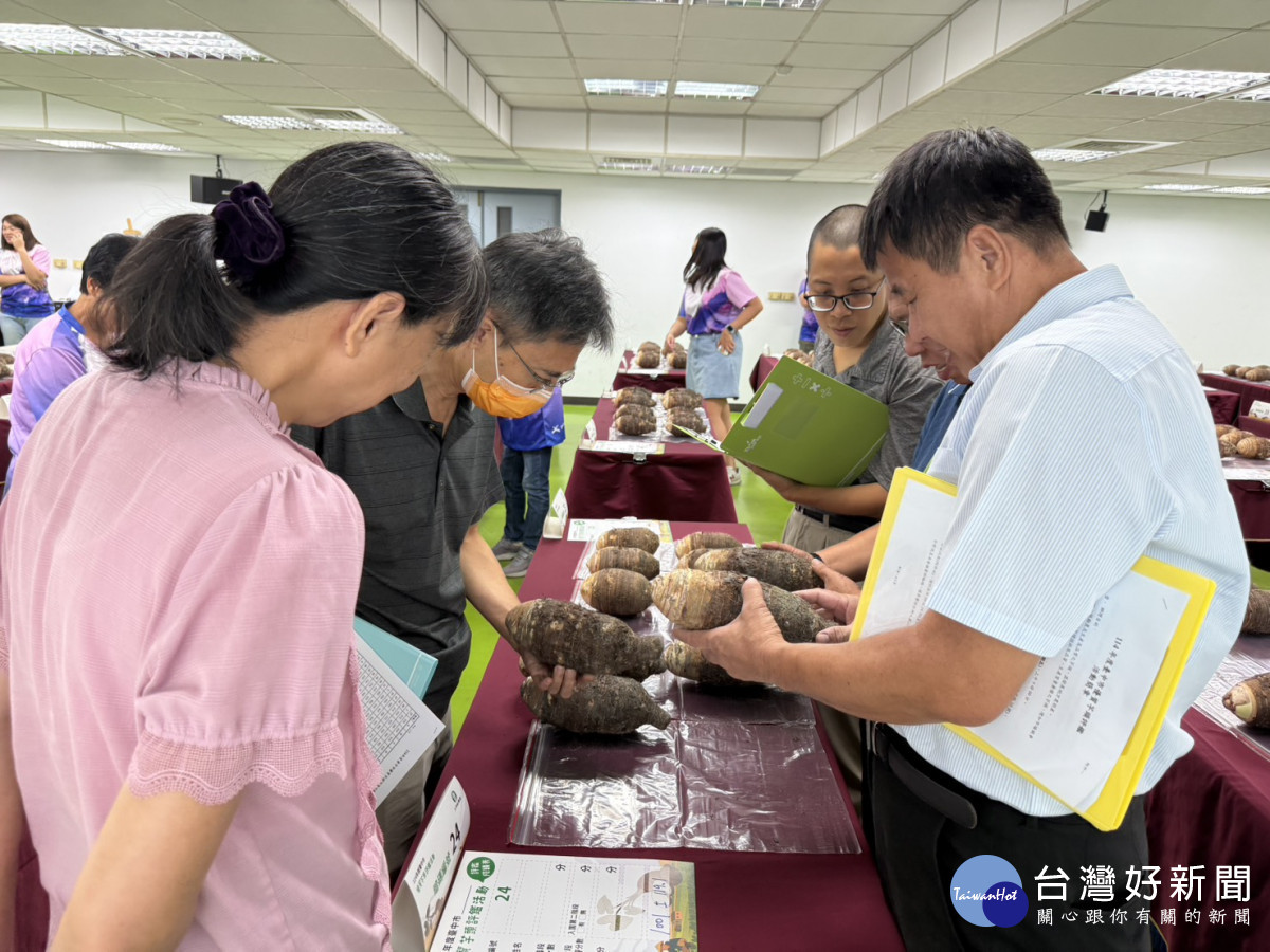 本次評鑑活動邀請農糧署中區分署張文美秘書、臺中區農業改良場蕭政弘副場長、農業部農業試驗所康樂助理研究員、中興大學園藝學系黃三光副教授、及臺中果菜運銷股份有限公司陳又嘉課長等不同領域專家擔任評審委員,評審委員根據芋頭生鮮外觀(整齊度、形狀、縱剖面及病蟲害)及熟芋官能品評(香氣、色澤、質地及口感)項目進行評鑑,經評鑑選出冠軍頒發獎座及獎金25,000元,亞軍2名各頒發獎座及獎金12,000元,季軍3名各頒發獎座及獎金5,000元,優選6名各頒發獎牌及獎金3,000元。
